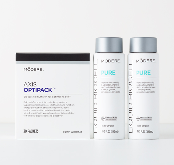 ’The Liquid BioCell® Pure (2ct) + Modere Axis OptiPack™ collection includes: